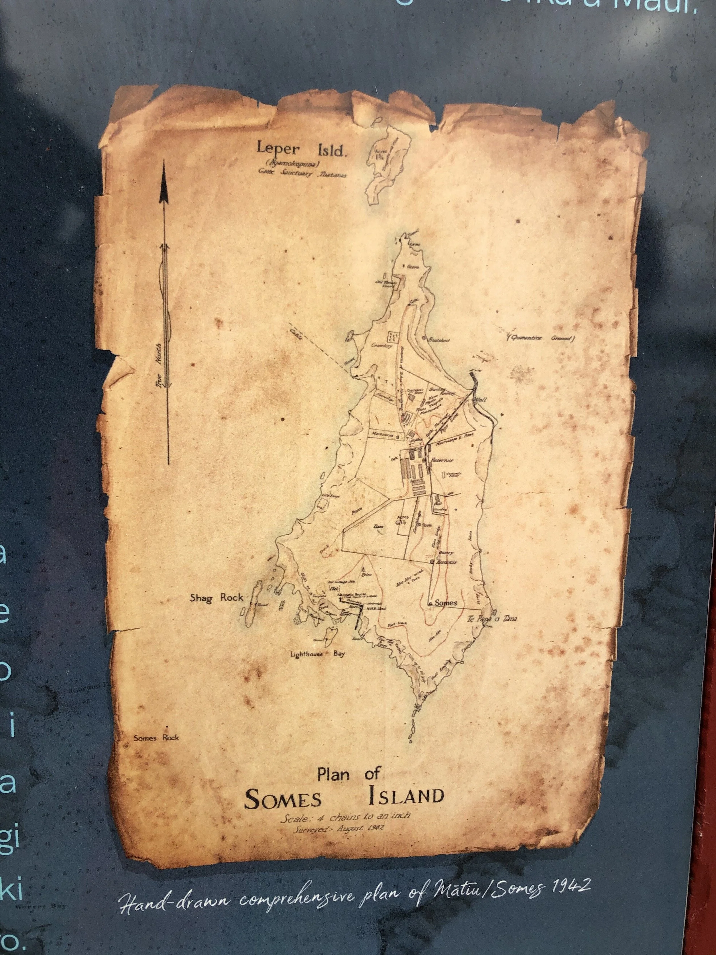 Taranaki Whānui ki Te Upoko o Te Ika is acknowledged as the tāngata whenua of Mokopuna (grandchild). Mokopuna is located adjucent to Mātiu Somes Island and Makāro Ward Island (collectively known as Harbour Islands) in Te Whanganui a Tara Wellington Harbour. These islands are intimately connected to Kupe, the legendary Polynesian navigator who left many markers on the landscape of Aotearoa. Between 1903 and 1904, Mokopuna was the home for Kim Lee, a Cantonese grocer supposedly diagonosed with leprosy following racist complaints from other residents in the quarantine station in Matiu Somes Island Kim stayed in Mokopuna for several months, where he was supplied with food and water via a flyng fox. Lee died alone on Mokopuna on 14th March 1904 and was buried on Matiu Somes Island.